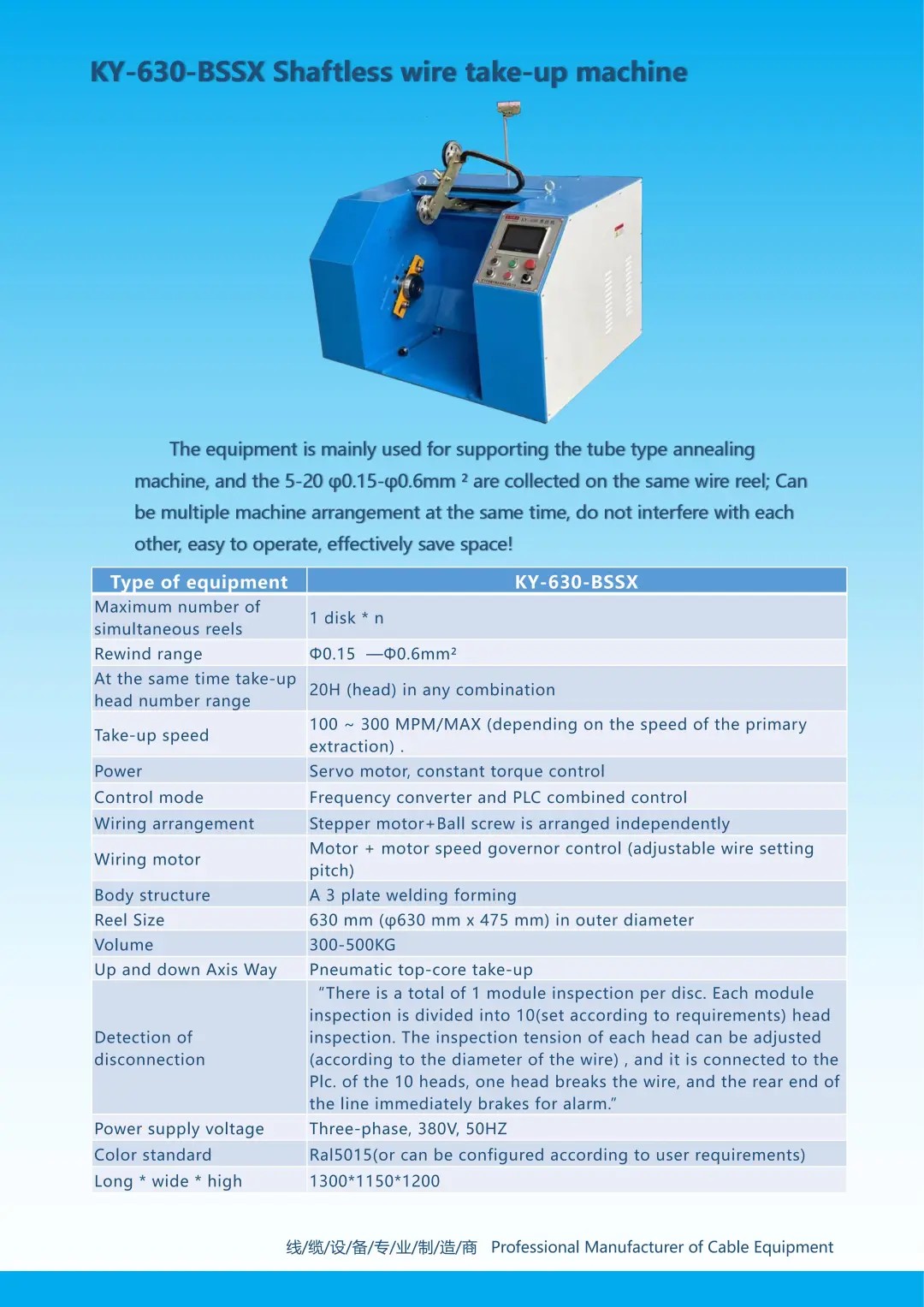 Yixing Kangyao Machinery Equipment Manufacturing Co., Ltd. was established in 2018, is a professional manufacturer of cable equipment integrating research and development, production and sales.