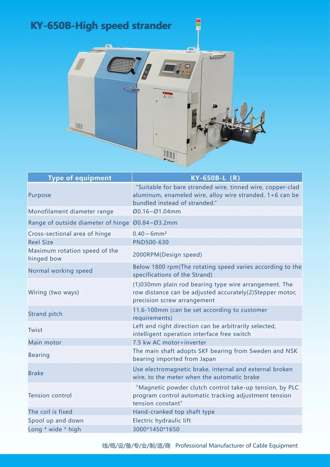 We continuously innovate, improve, and refine our products based on the development trends of the cable industry both domestically and internationally.Our main mature products include high-speed stranding machines, power pay off racks, wire rewinding machines, integrated rewinding machines, and matching equipment developed and produced to meet the technical requirements of different products in the cable industry.