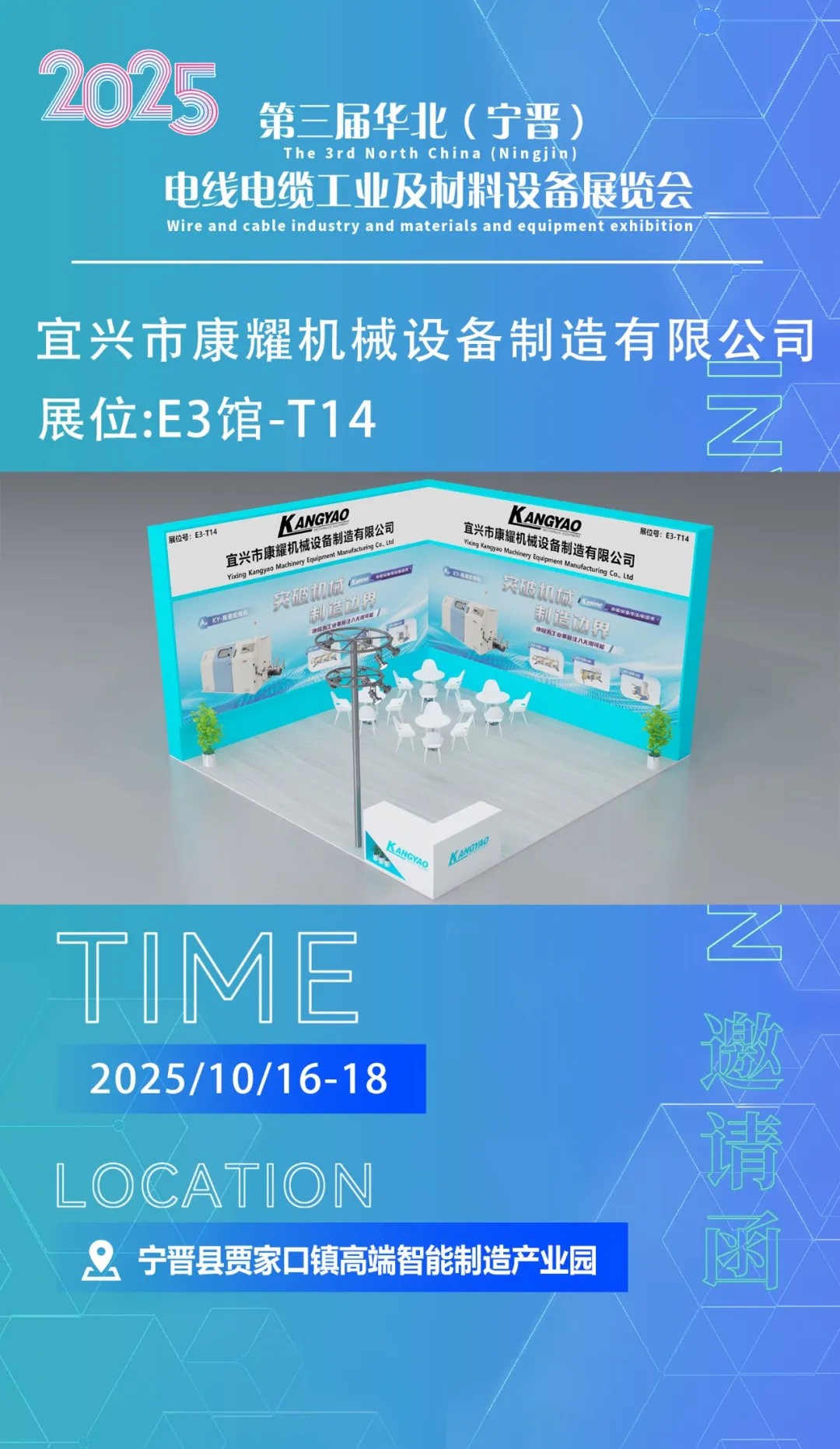 [Invitation Letter] Yixing Kangyao Machinery Equipment Manufacturing Co., Ltd. invites you to participate in the 3rd North China (Ningjin) Wire and Cable Industry and Material Equipment Exhibition